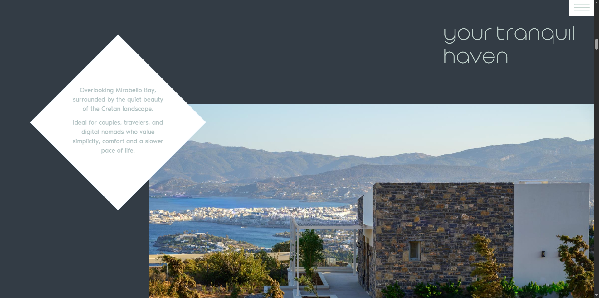 A small modern villa house in Crete. The project included brand identity, website presentation and bookings solution.