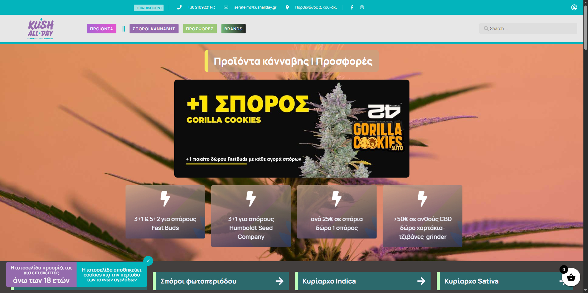 A fully custom-designed website/e-shop for an upcoming cannabis store in Athens